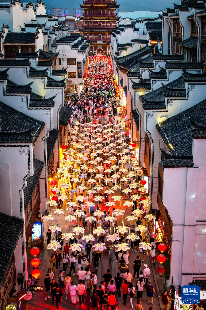 5月3日,游客在广西南宁市朝阳路游览。新华社记者 陆波岸 摄