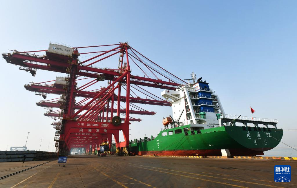 1月15日,一艘货轮靠泊在黄骅港综合港区集装箱码头。新华社发(苑立伟 摄)