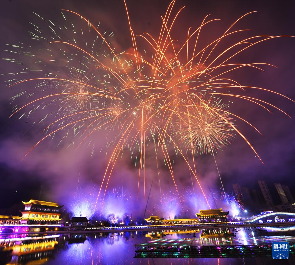 这是3月1日在甘肃省临夏回族自治州和政县拍摄的焰火表演。新华社发(史有东摄)