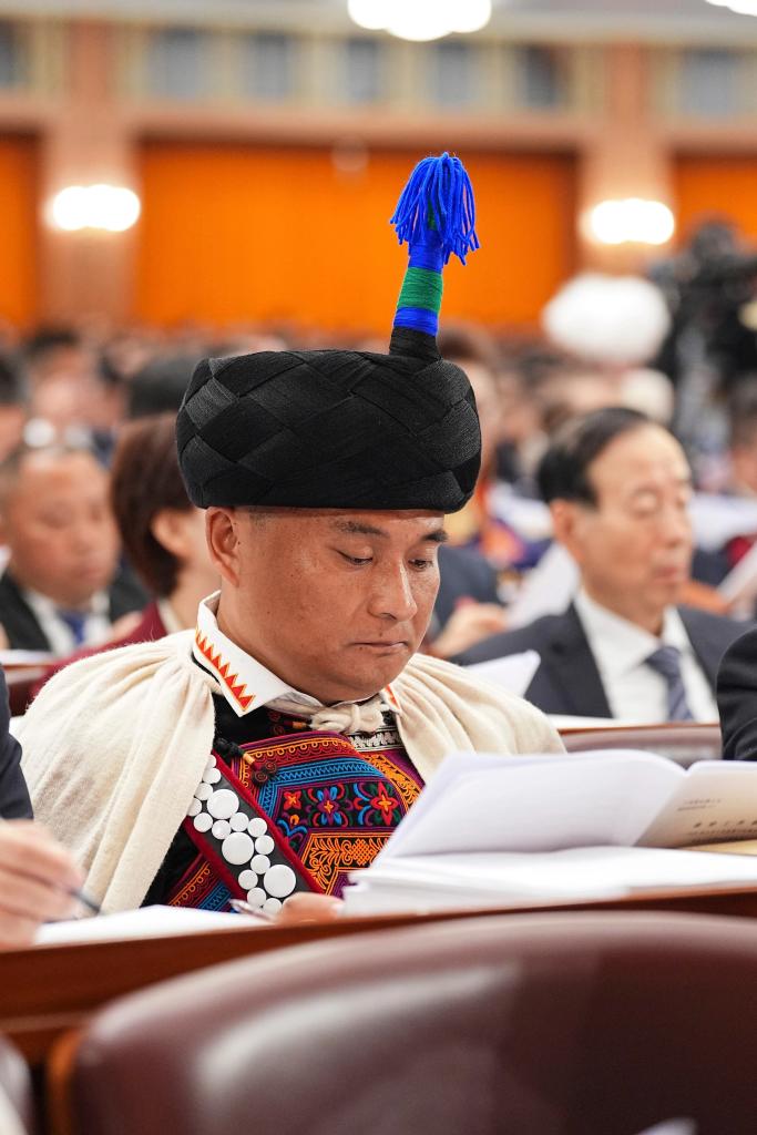 3月5日,全国人大代表郑望春出席十四届全国人大四次会议开幕会。新华社记者 邢广利 摄