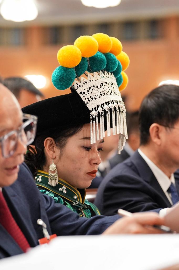 3月5日,全国人大代表金瑞瑞出席十四届全国人大四次会议开幕会。新华社记者 邢广利 摄