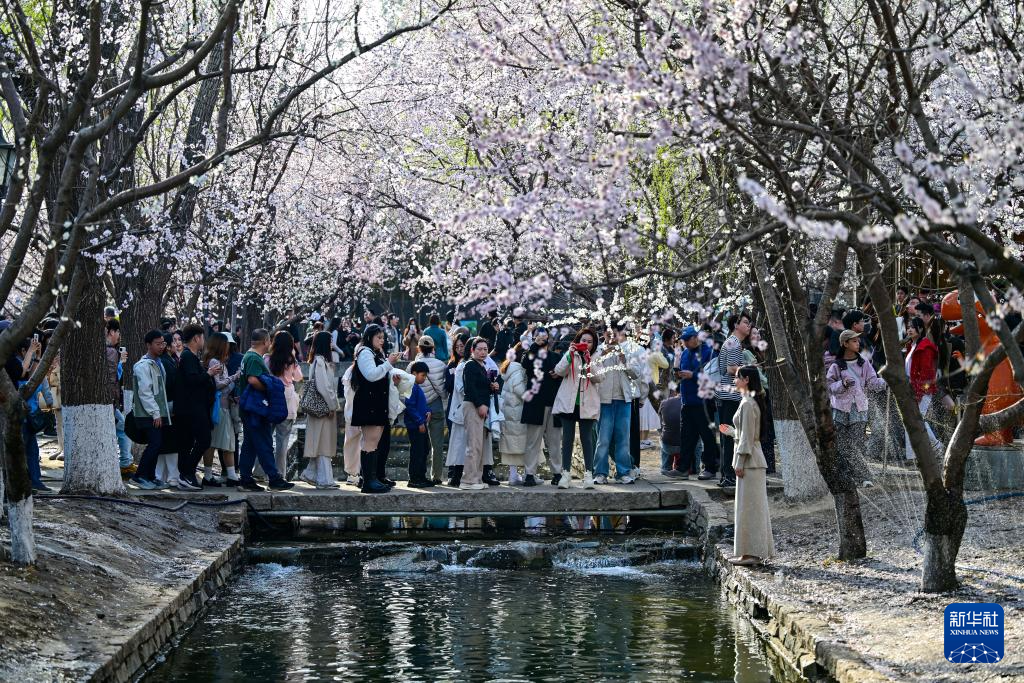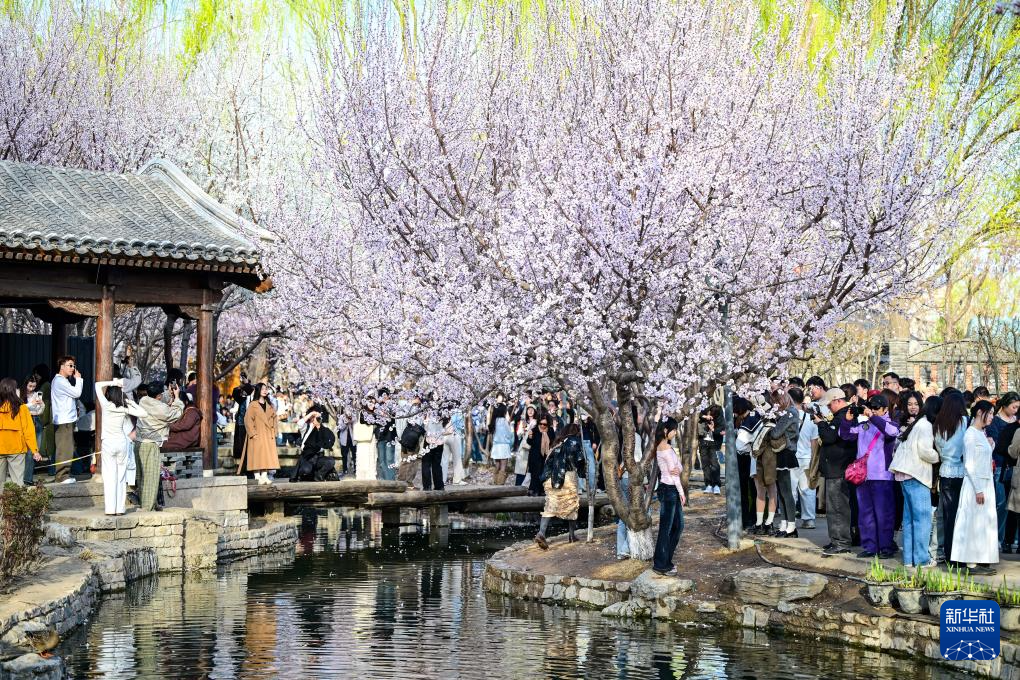3月22日,游人在北京三里河公园拍摄。新华社记者 陈晔华 摄
