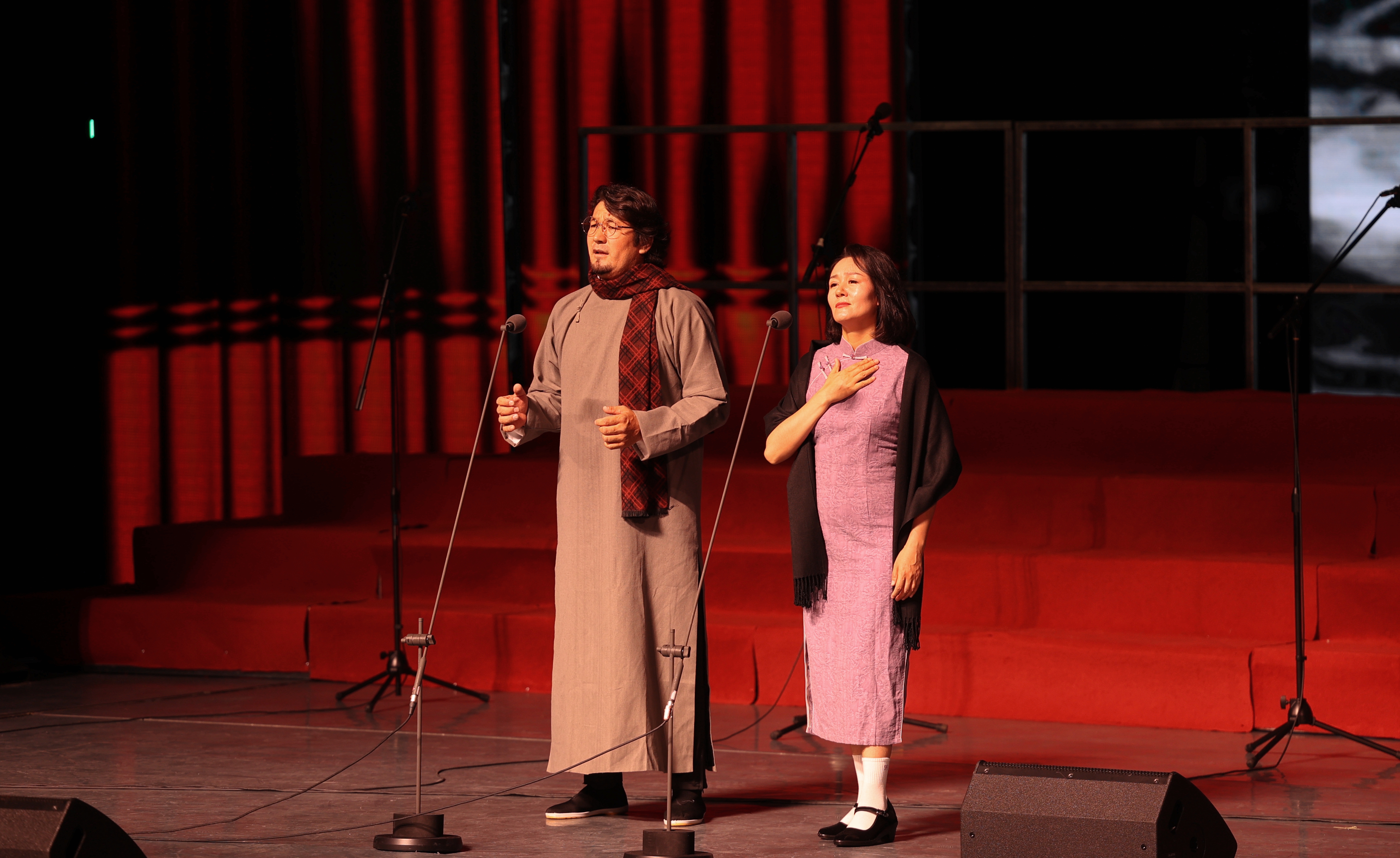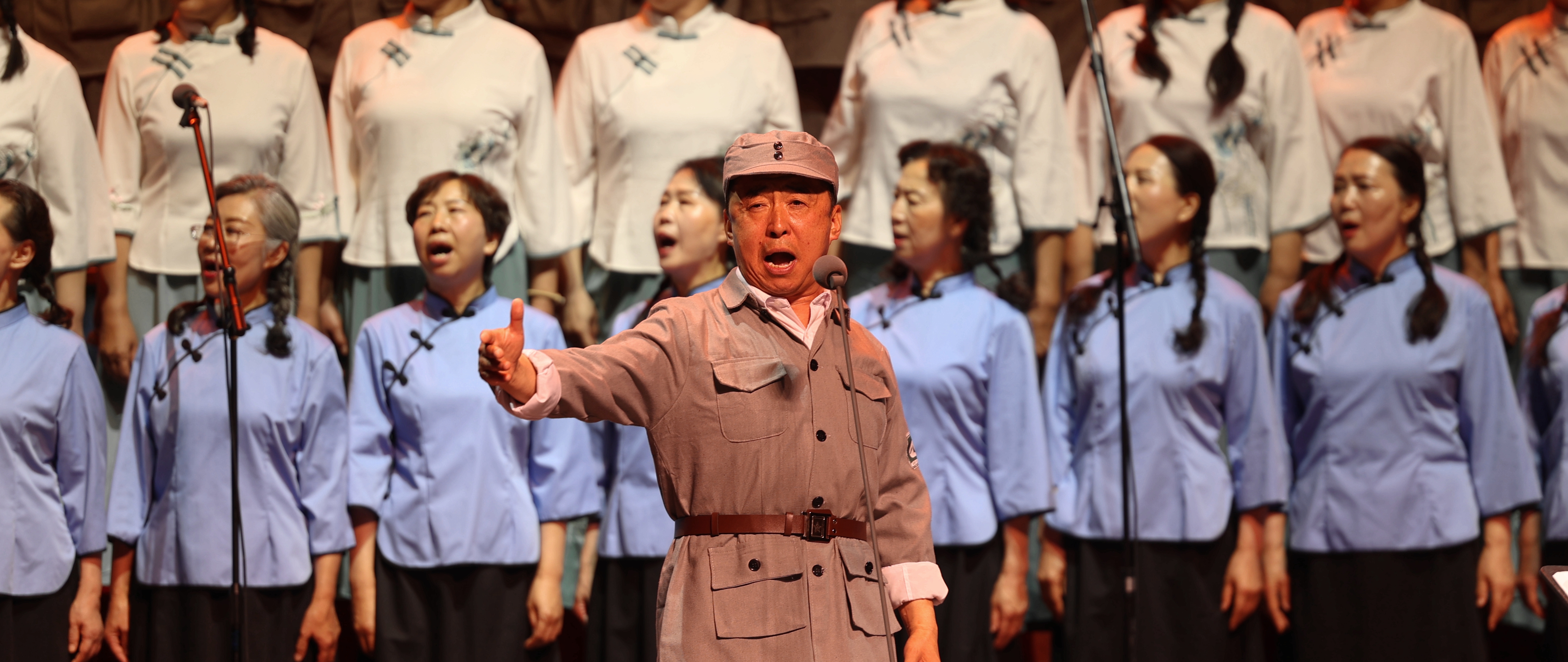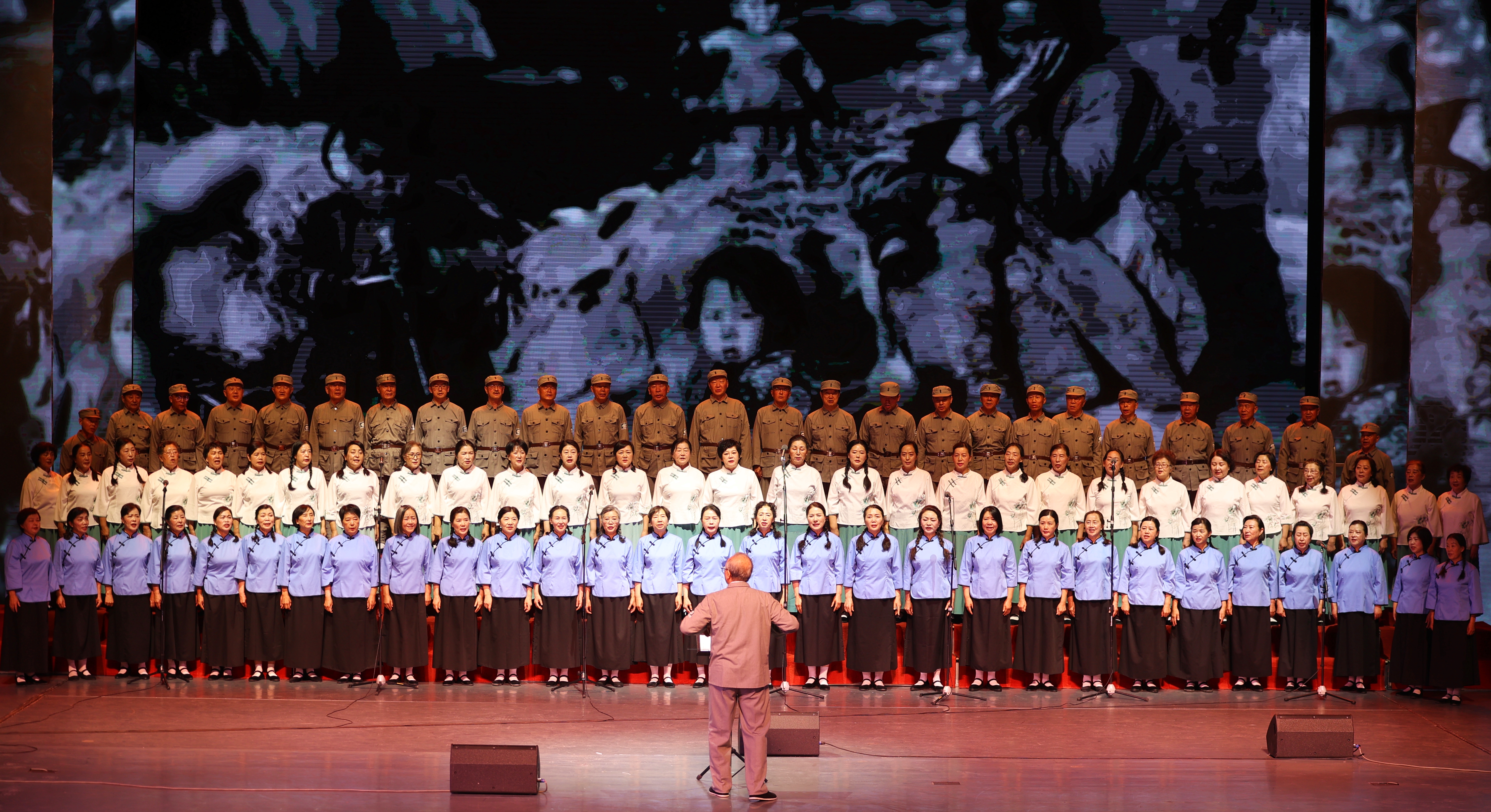 地区音乐家协会主席、地区音协合唱团指挥林勇刚表示:“这些旋律里既有先烈的热血,也有民族的脊梁,我们将这份力量传递给观众——记住历史,才懂今天的安宁多珍贵。”诗朗诵《黄河之水天上来》表演者孙磊动情地说:“历史的车轮滚滚向前,但80年后的今天,当我们再次回望那段烽火岁月,心中依然充满敬畏与感怀。历史的创伤永远不能遗忘,英勇抗战的精神永远不能褪色!”