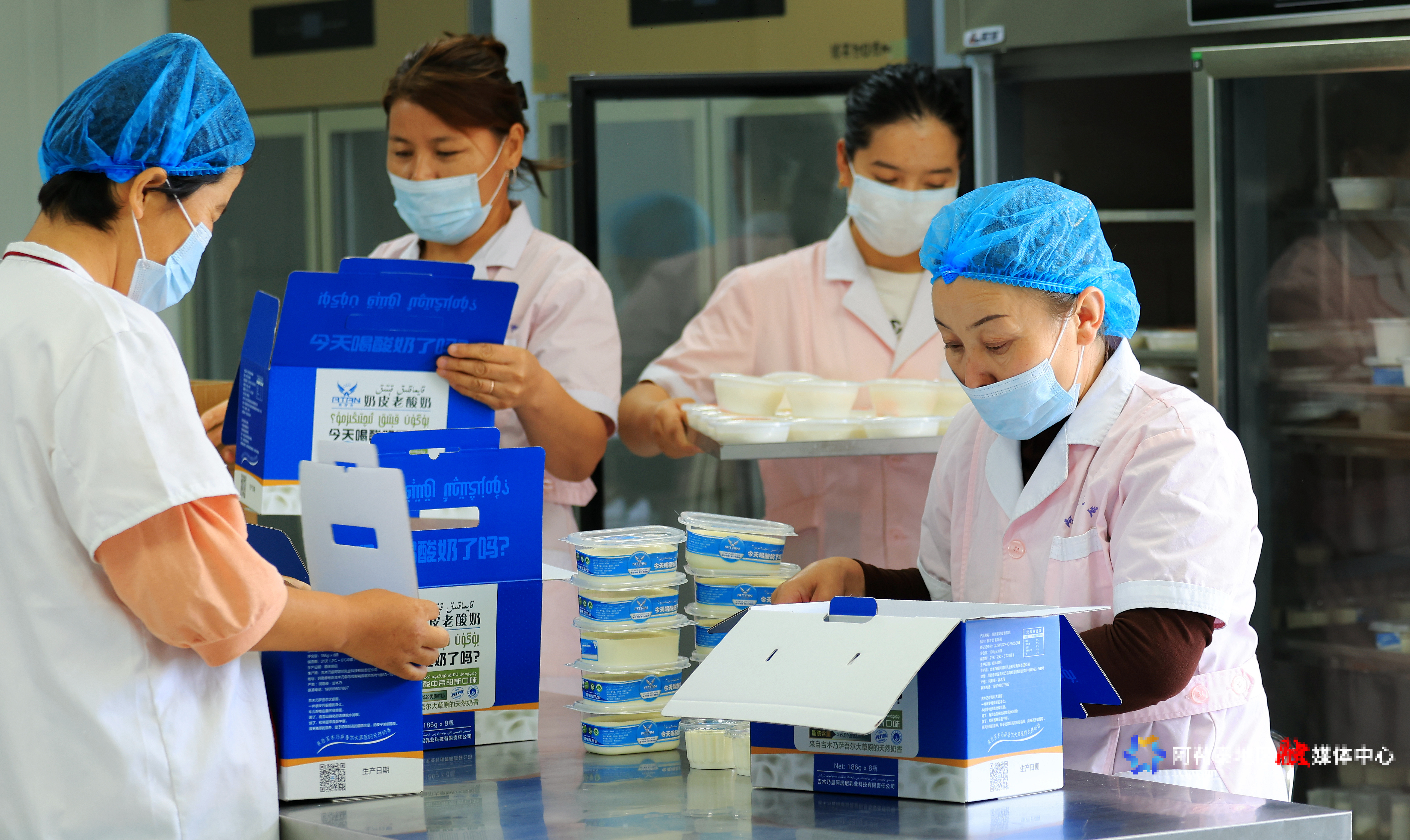 阿勒泰新闻网-阿勒泰地区融媒体中心(记者 阿尔达克·拜斯汗)8月11日,吉木乃县阿塔尼乳业科技有限责任公司生产车间内一派繁忙,身着整洁工装的工人正在操作台前制作各类乳制品,浓郁的奶香弥漫车间。