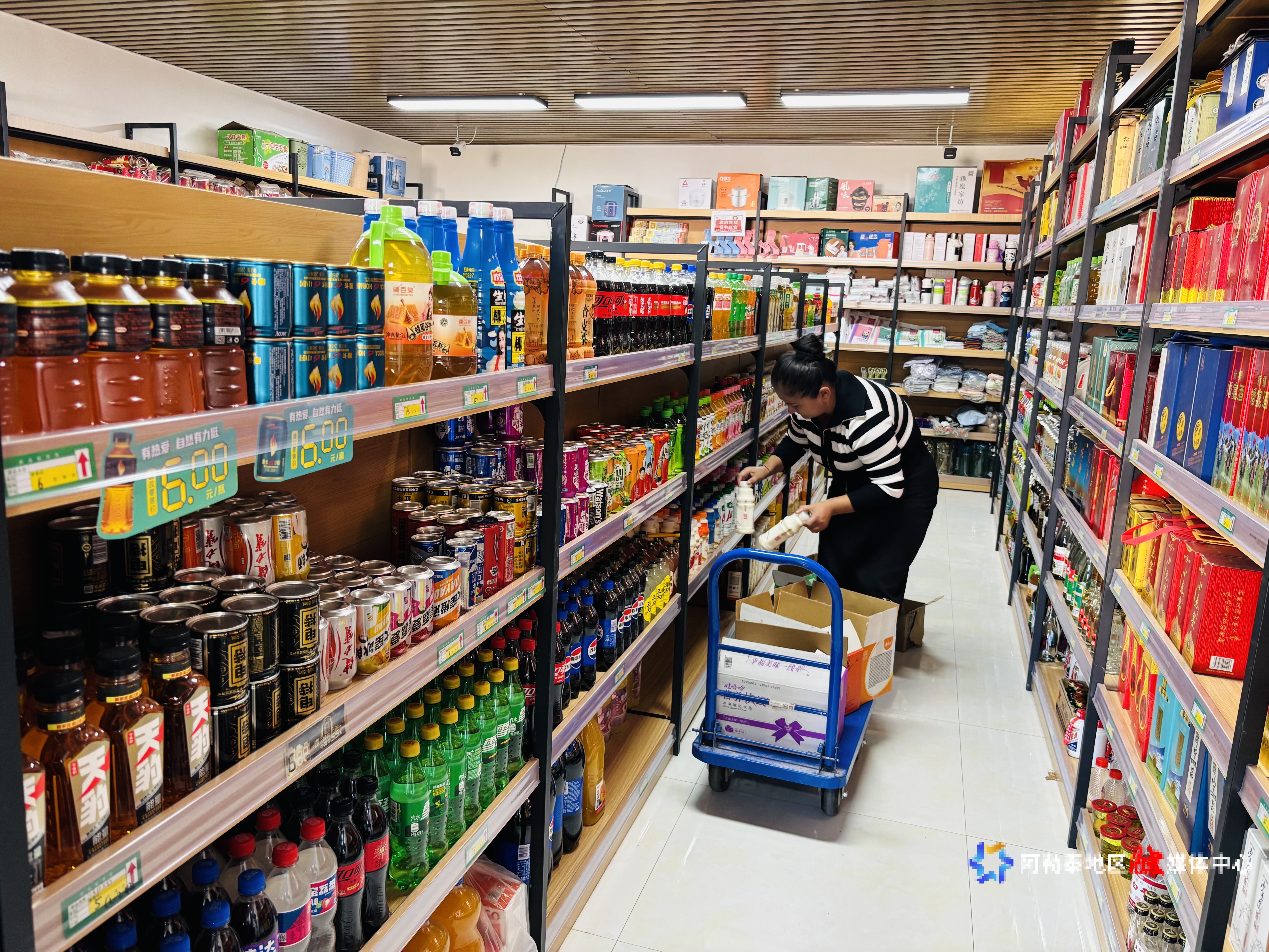 村民正在吉木乃县乌拉斯特盛世强村农业发展有限公司成立的联合超市选购物品。地区农业农村局供图