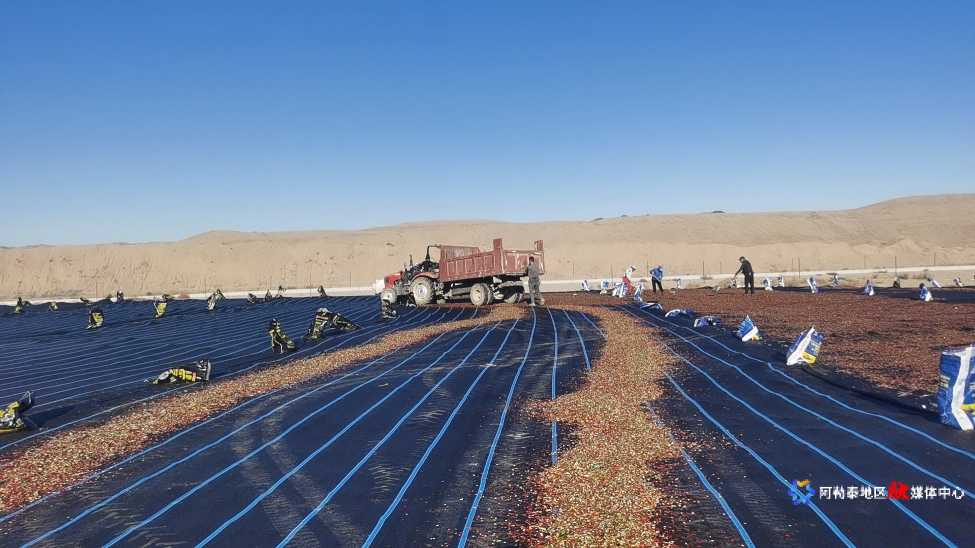 青河县阿格达拉镇旺农兴村供销社有限公司种植的打瓜丰收了。公司组织周围的群众过来晾晒,在帮助增收的同时,也解决了一部分零工就业。地区农业农村局供图