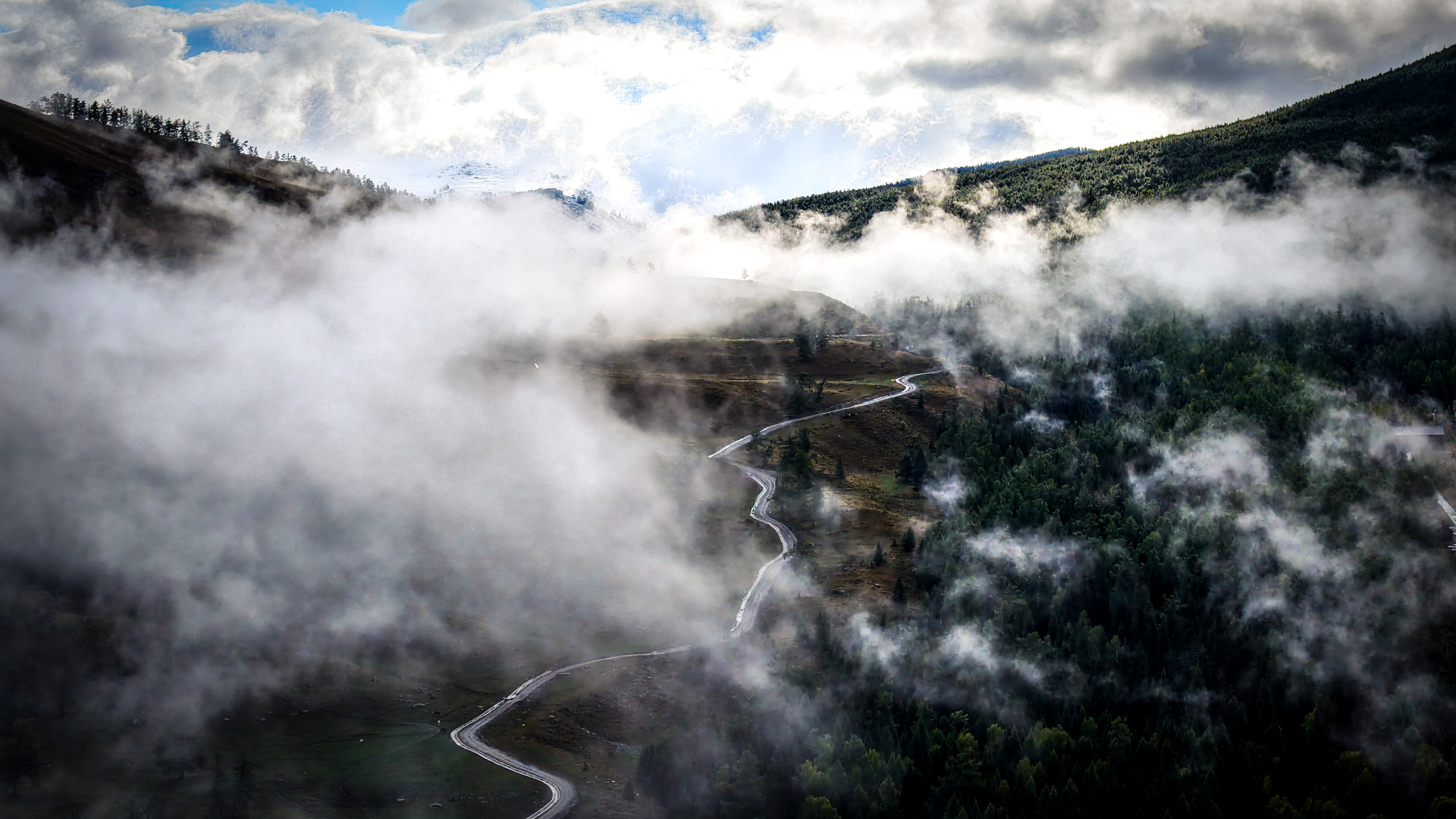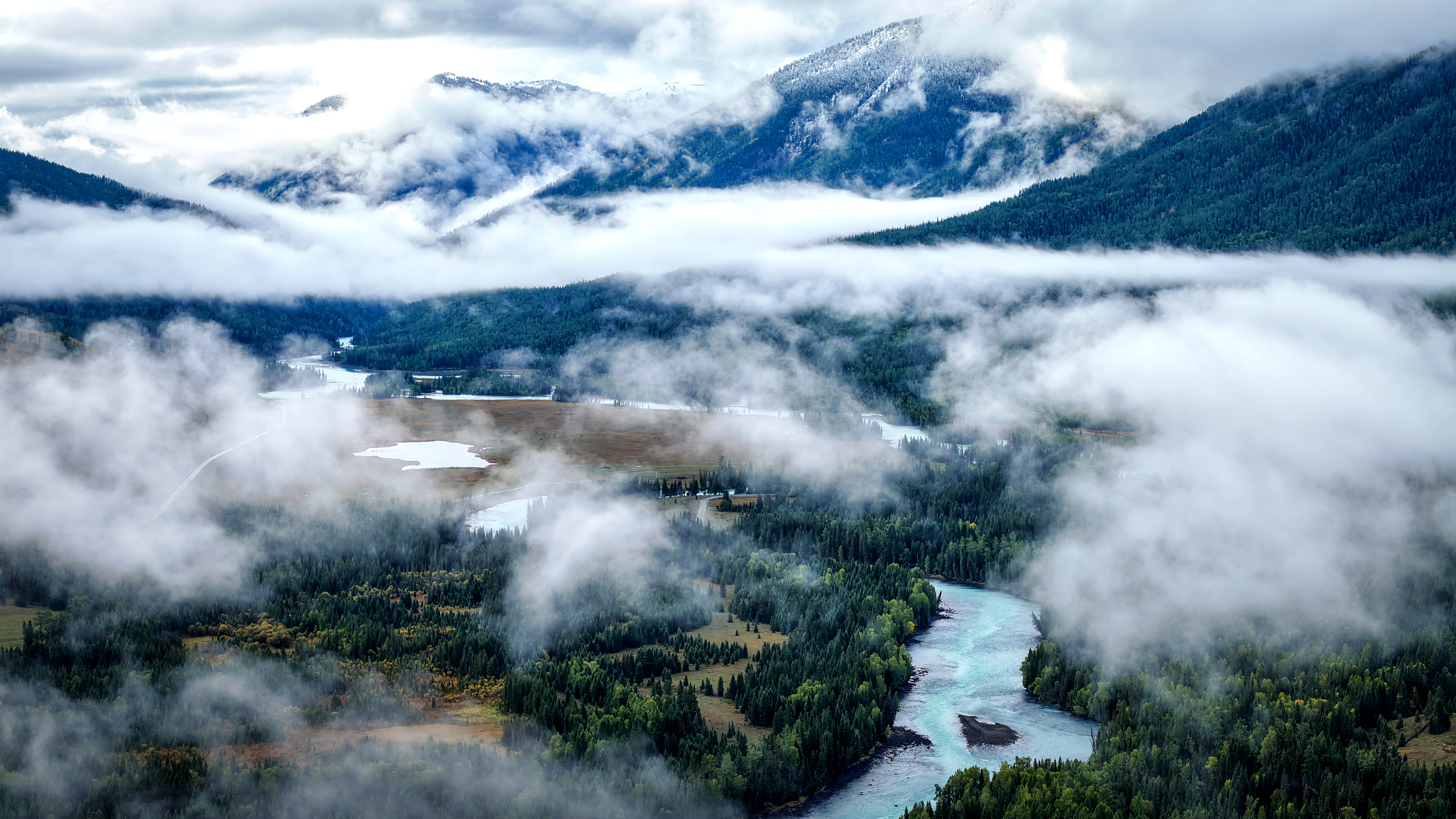 秋日云雾缭绕 喀纳斯秒变“仙境”