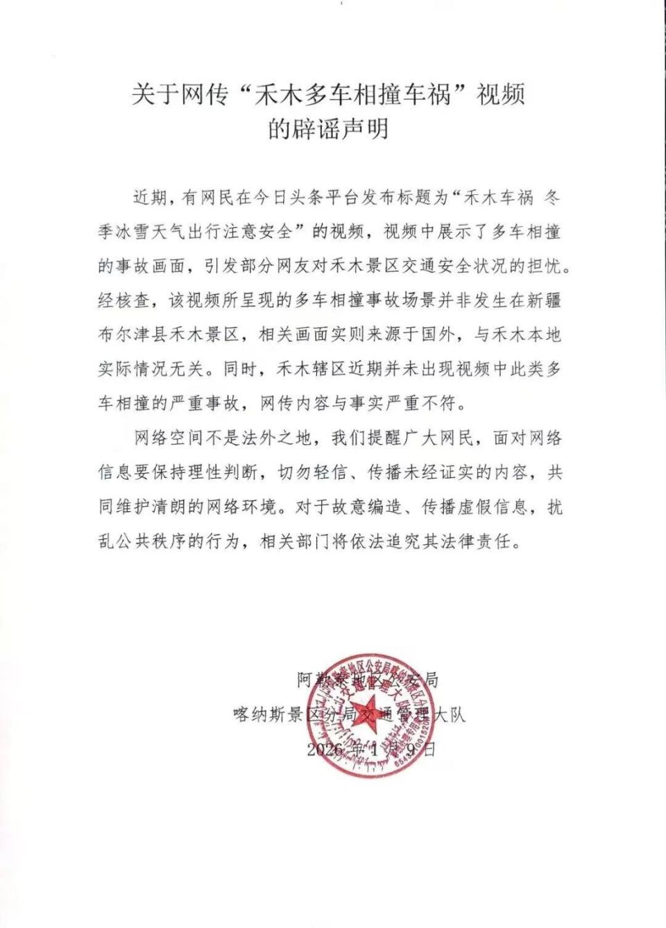 网传“新疆禾木喀纳斯景区多车相撞车祸”?当地回应