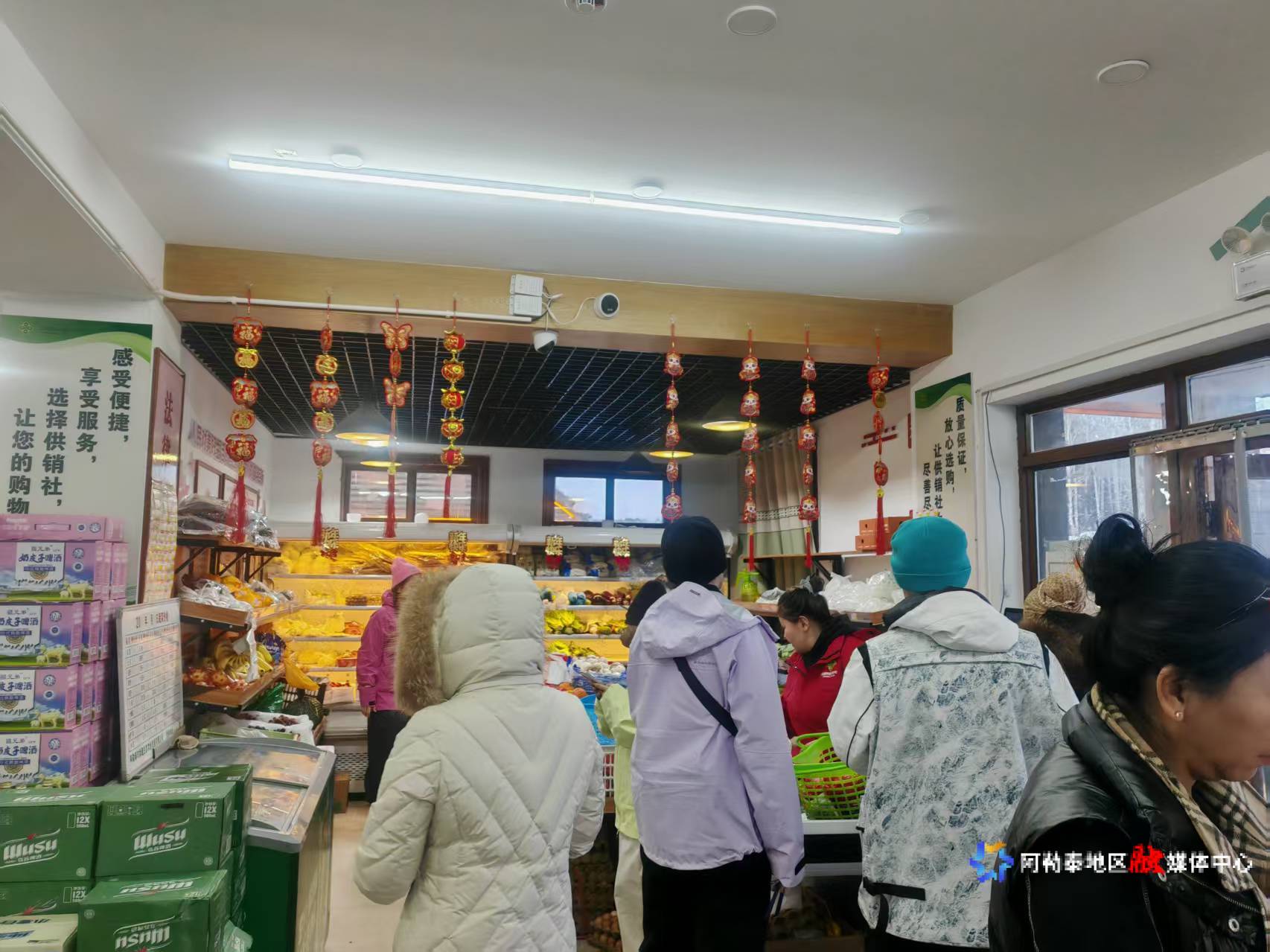 布尔津县禾木乡供销合作社平价超市人来人往、暖意融融。