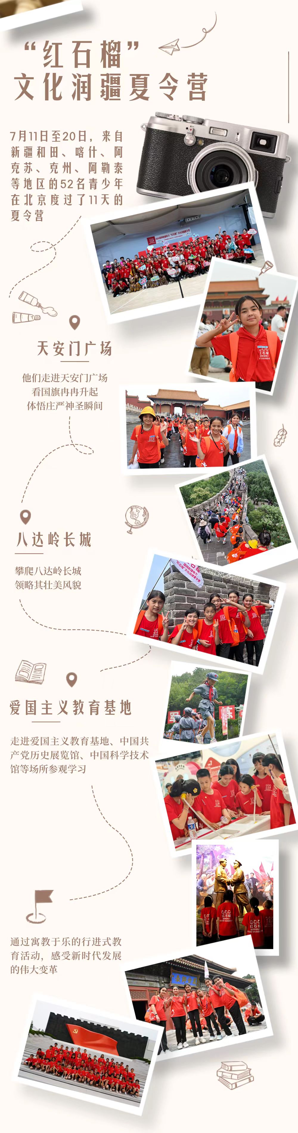 “红石榴”文化润疆夏令营。摄影师@李叶超、刘栋、张利民,制图@王萍
