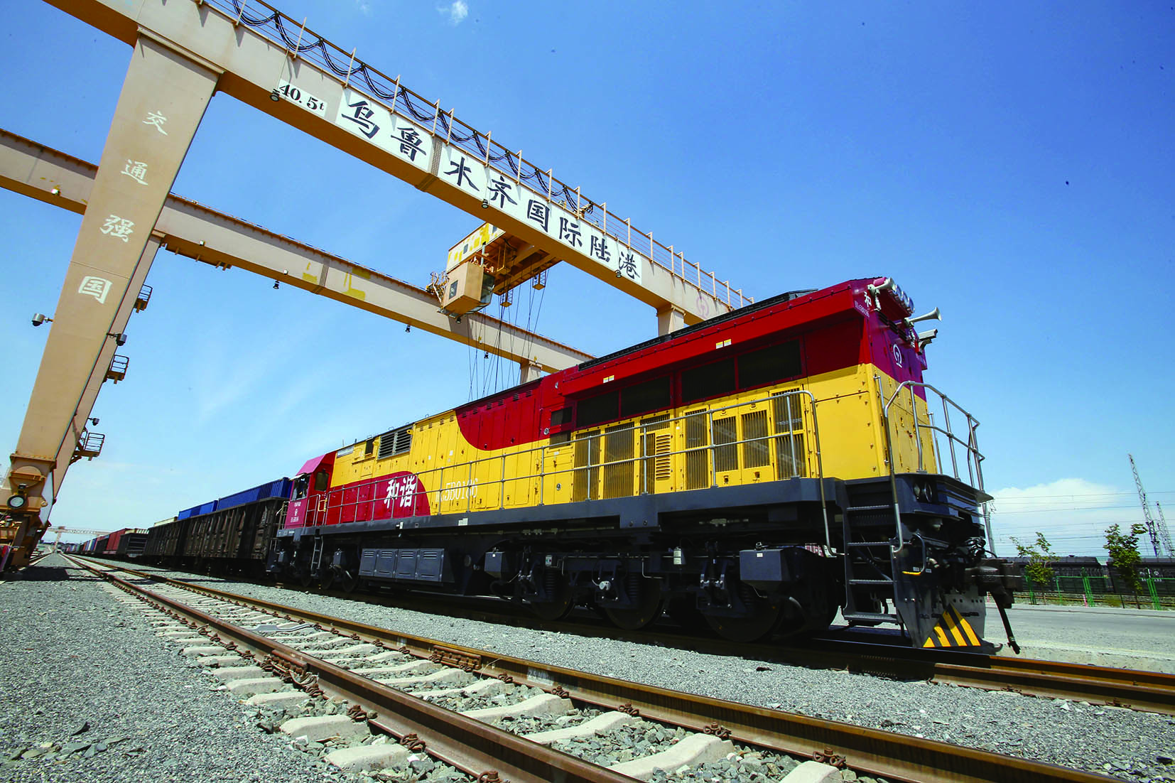 一列货运班列驶出乌鲁木齐国际陆港区。韩亮摄