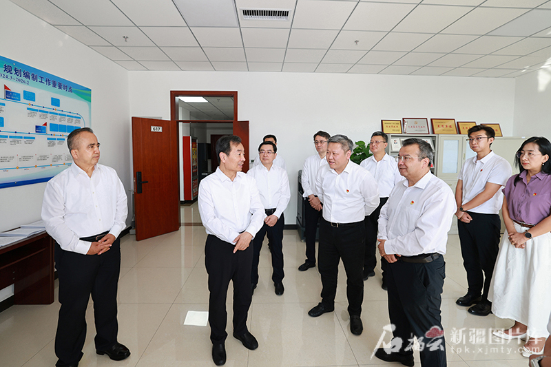 8月8日,自治区党委书记陈小江、自治区主席艾尔肯·吐尼亚孜在自治区发展改革委发展战略和规划处,详细了解自治区“十五五”规划编制进展,就谋划和推进各项重点工作同大家深入交流。石榴云/新疆日报记者 崔志坚摄