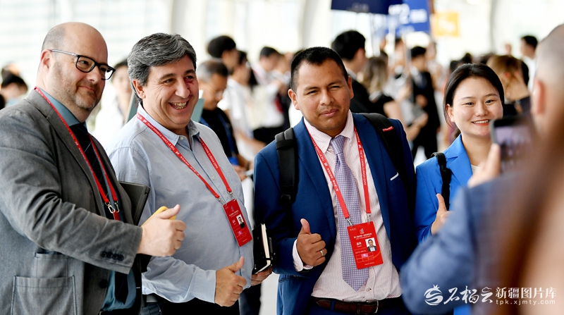 第八届中国-亚欧博览会开幕式结束后,中外嘉宾在场馆合影(2024年6月26日摄)。天山网-新疆日报记者 邹懿摄