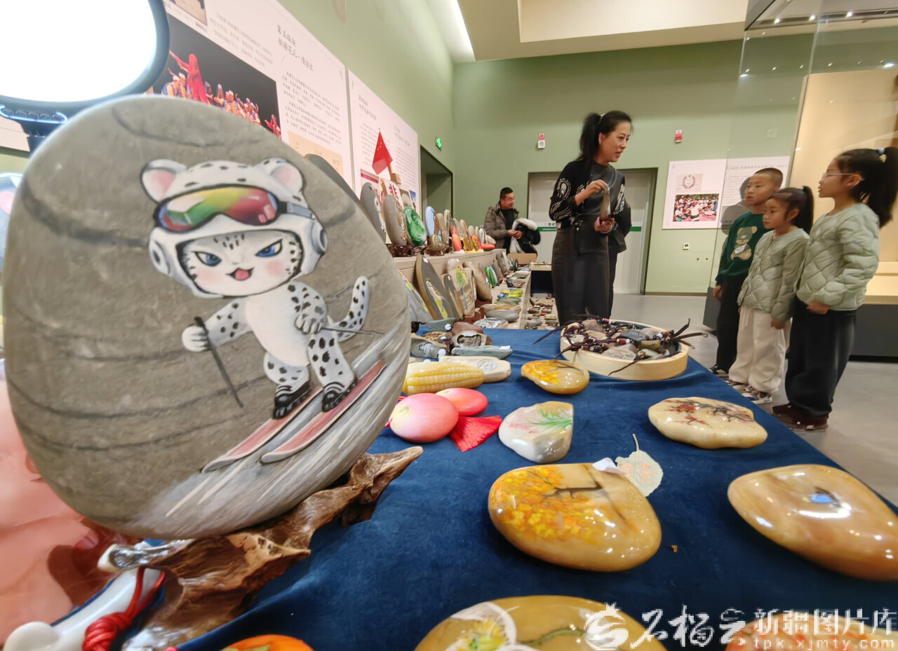 12月1日,在乌鲁木齐市博物馆,一幅幅精美的石头画吸引了孩子们驻足观赏。