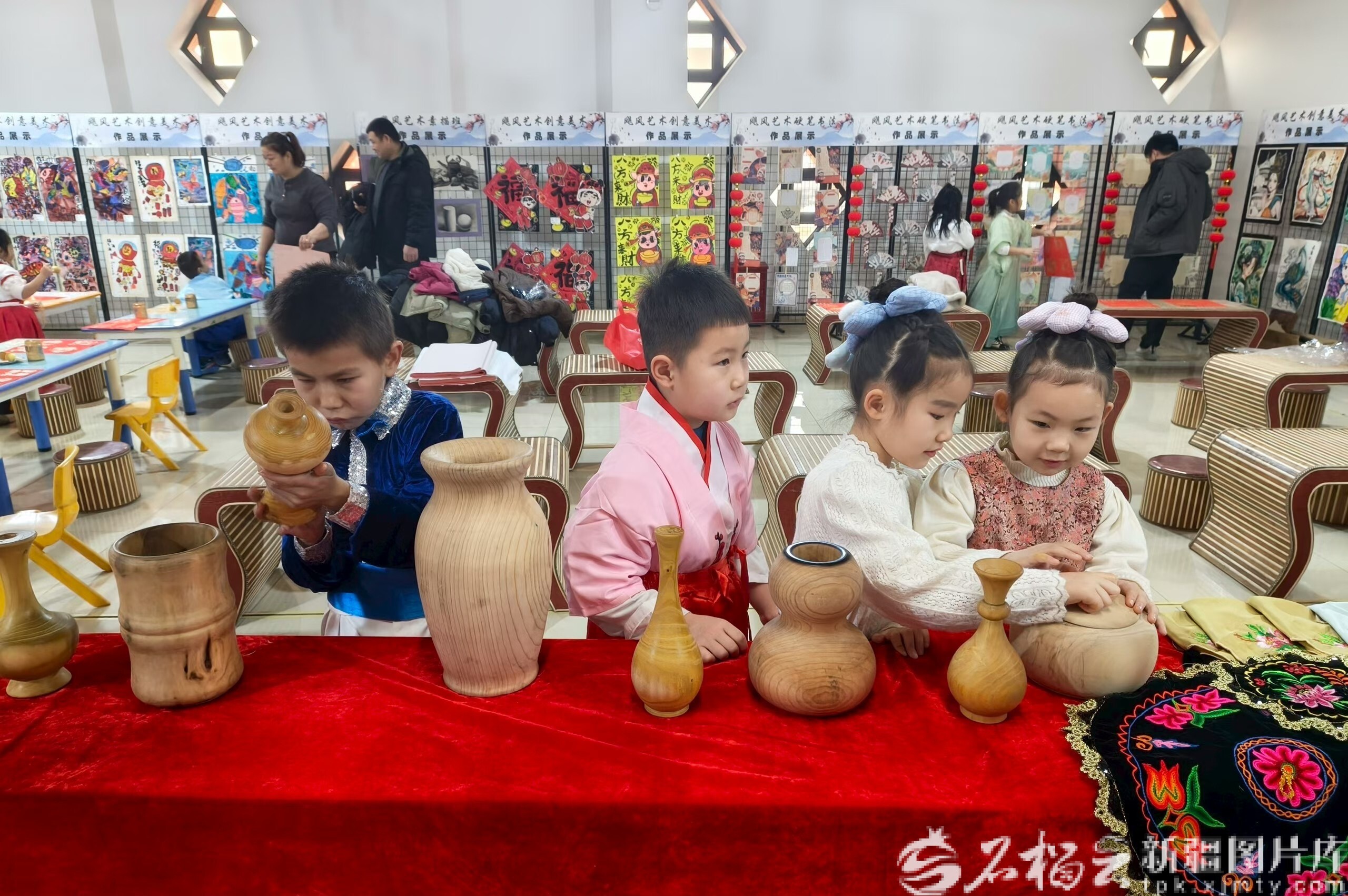 春节前,在“幸福吐鲁番,欢乐中国年”年货大集托克逊分会场,孩子们通过与木艺、刺绣等非遗作品亲密接触,感受中华优秀传统文化魅力,让非遗之美在少年心中生根发芽。朱子孟摄